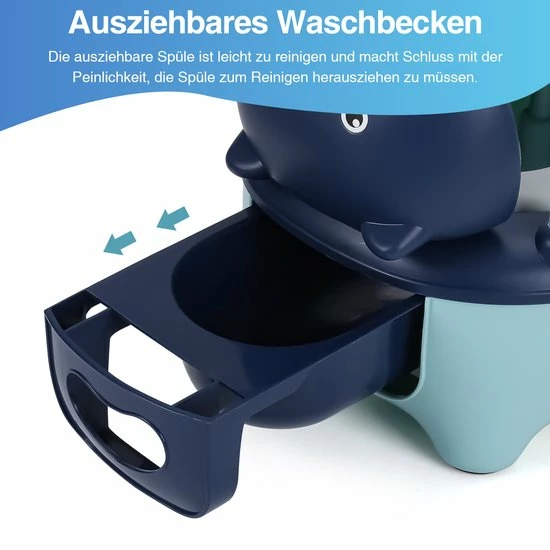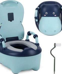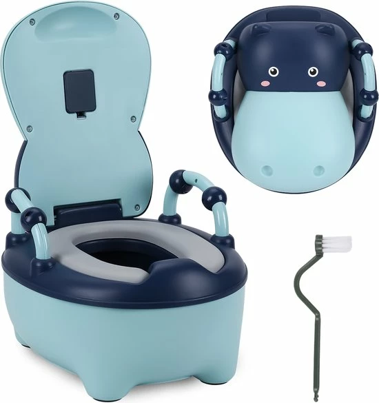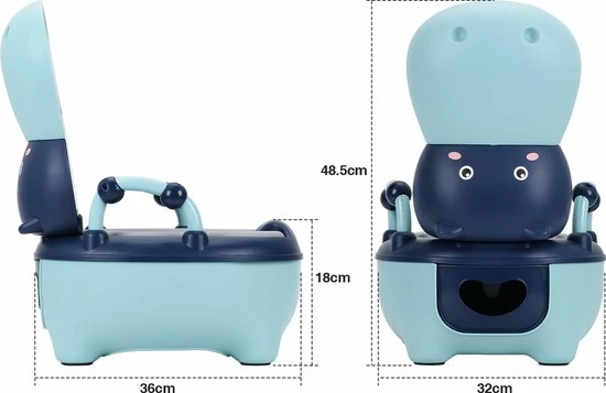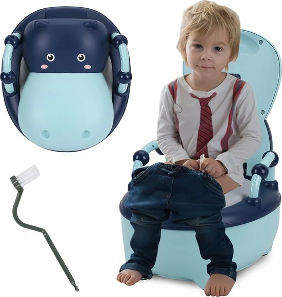 (2) Het kindertoilet heeft een spatscherm, dat effectief voorkomt dat water opspat. Aan beide kanten van het potje zitten handvatten, die het voor de baby gemakkelijker maken om vast te pakken en zorgen voor een stabiel evenwicht.