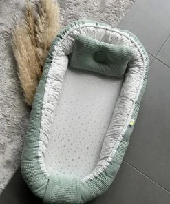 Dit babynestje is te combineren met het bijpassende dekentje Waffle Green, B?b?lunes, het bed textiel Little Star (bedomrander, dekbedovertrek + kussensloop) en het B?b?lunes speelnestje van Waffle Green.