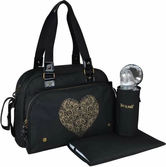 Zwart hart goud – Met 2 grote compartimenten met brede opening – 8 zakken – Inclusief: verschoningskussen, ge?soleerde flessenhouder met drukhandvat en wandelwagenbevestigingen