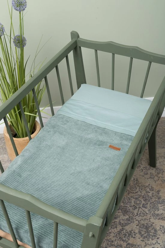 De Baby?s Only ledikantdeken teddy Sense zeegroen is stijlvol en gemaakt van superzachte geribbelde stof. Trendy, retro en hip, kortom, de fijne rib corduroy wiegdeken is helemaal van nu. De klassiek rib corduroy is opnieuw uitgevonden en in de moderne, natuurlijke kleuren past het perfect in een modieuze babykamer. Door een backing van teddy stof voelt de Sense ledikantdeken zeer comfortabel en lekker warm aan voor je baby. Het ledikantdekentje heeft een afmeting van 100×135 cm en is wasbaar, vormvast en kleurecht.
