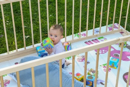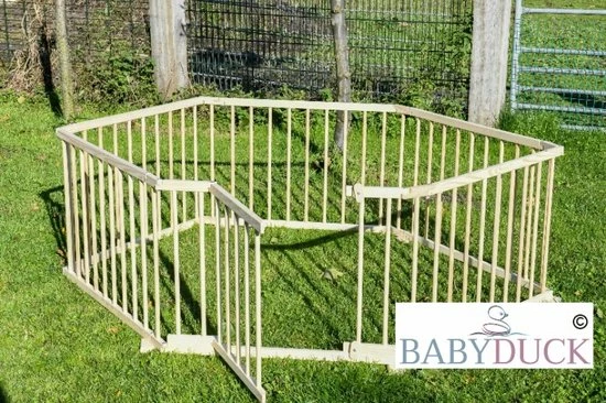 Houten grondbox met 6 panelen inklapbaar.