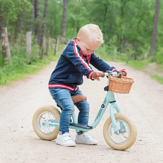 Ga op avontuur met de Starter Retro mint. Deze stoere loopfiets is geschikt voor kids vanaf 2 jaar dankzij een lage instap en handige voetenplank. In hoogte verstelbare zadel (29-39 cm) en het in hoogte verstelbare stuur (49-55 cm). Stoere witte luchtbanden, retro mint frame, bruin zadel en bruine veiligheidshandvaten. In deze set wordt het rieten stuurmandje meegeleverd.
