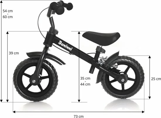 Deze stoere Wheely loopfiets van Baninni is geschikt voor kinderen van 2 tot 3 jaar. Door het verstelbare zadel en in hoogte verstelbare stuur groeit deze loopfiets mee met je kindje. De loopfiets heeft een stevig, lichtgewicht stalen frame en comfortabele slijtvaste EVA bandjes die niet lek kunnen gaan. Deze loopfiets is verder voorzien van Anti-slip handgrepen en een handrem voor extra veiligheid.Het rijden met een loopfiets is ideaal om je kindje te leren het evenwicht te behouden. Hiermee wordt ook de ontwikkeling van de coördinatie van je kindje verbeterd. Onderzoek heeft uitgewezen dat dit soort loopfietsen een zeer goede invloed hebben op de ontwikkeling van het kindje.Kenmerken Loopfiets Baninni Wheely•Stoere, stevige loopfiets•Geschikt voor kinderen van ca 2-3 jaar•Veilig en anti-slip handvat•Comfortabel zadel•Comfortabele & slijtvaste EVA banden•Kunststof velgen Lichtgewicht•Afmetingen: 72 x 50 x 55 cm•Zithoogte is verstelbaar van 36-46cm