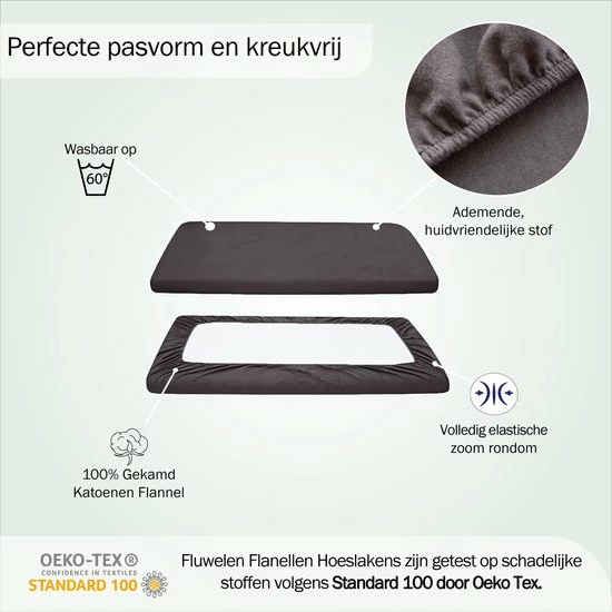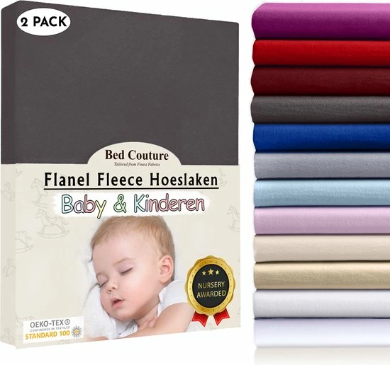 Bed Couture Flanel Fleece Baby Kinder Hoeslaken – 100% Katoen Extra Zacht En Warm – Ledikant – 60×120 Cm – Antraciet