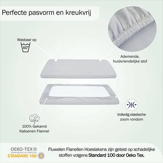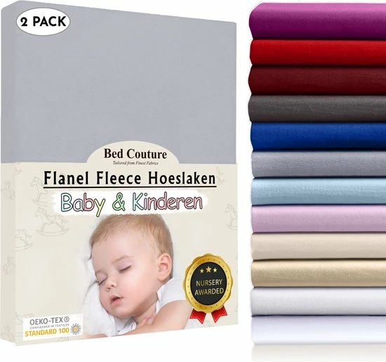 Bed Couture Flanel Fleece Baby Kinder Hoeslaken – 100% Katoen Extra Zacht En Warm – Ledikant – 60×120 Cm – Winter Grijs