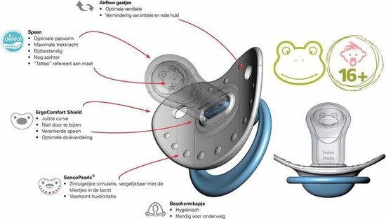 - Dental Speen: Optimale Pasvorm, Maximale trekkracht, Bijtbestendig en nog zachter. De tattoo in de speen refeert aan maat.