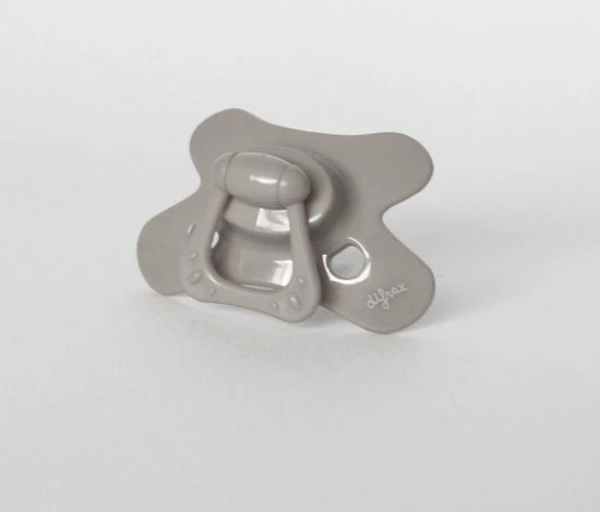De grijze 6+ Maanden Difrax Dental Pure fopspeen heeft een platte en bolle kant waardoor je kindje meer grip ervaart en de speen zo beter in het mondje kan houden.