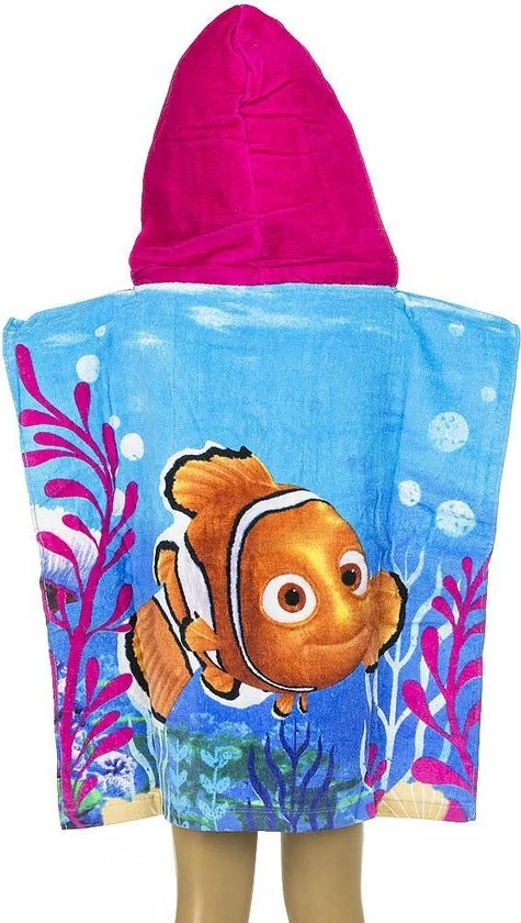 Finding dory poncho kleur roze ( capuchon) De poncho heeft een formaat van 50 x 100cm.