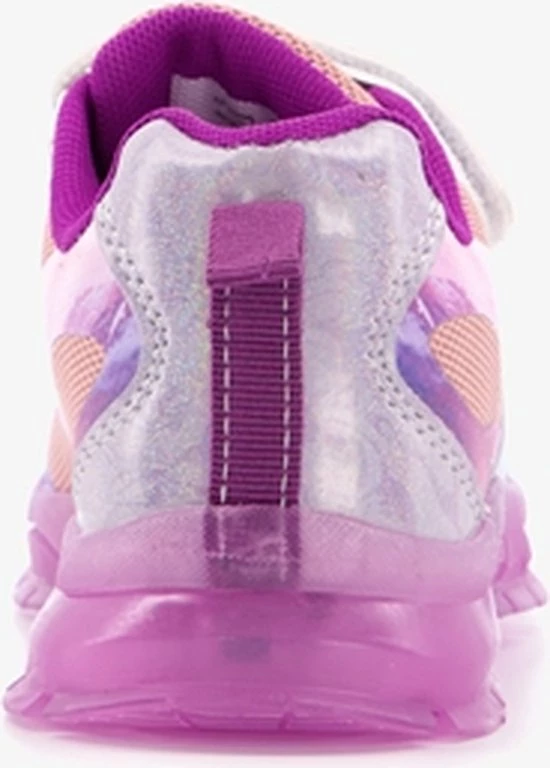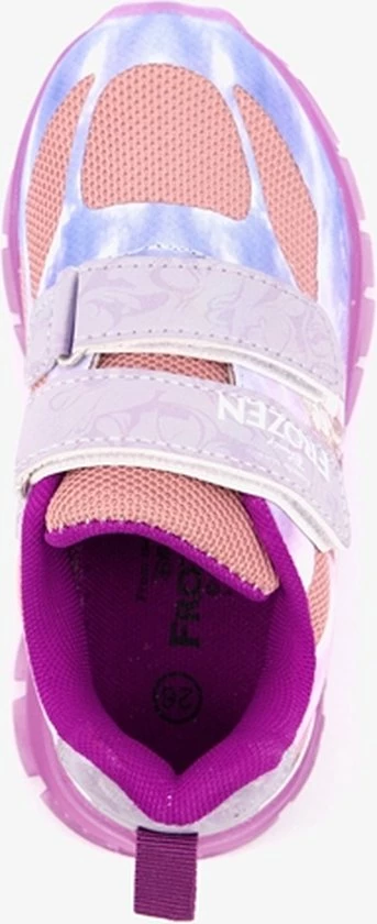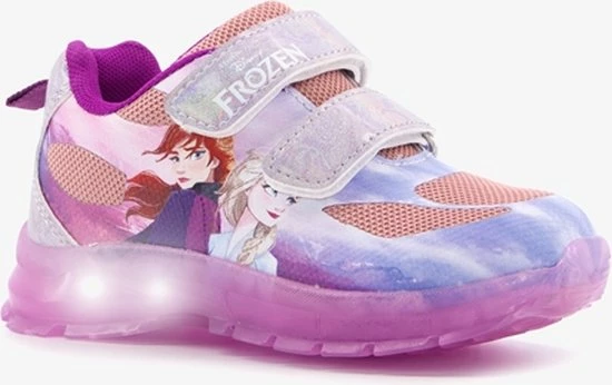 Roze sneakers van Frozen met lichtjes voor de echte Frozen fans! Deze toffe sneakers hebben een buitenwerk van imitatieleer, een binnenwerk van textiel en een stevige zool. De sneakers zijn voorzien van klittenbandsluiting en hebben een handig aantreklusje op de hak. De lampjes in de zool gaan aan tijdens het lopen. De lampjes zijn niet oplaadbaar. Het buitenwerk is voorzien van mesh inzetten wat zorgt voor ventilatie tijdens het dragen.