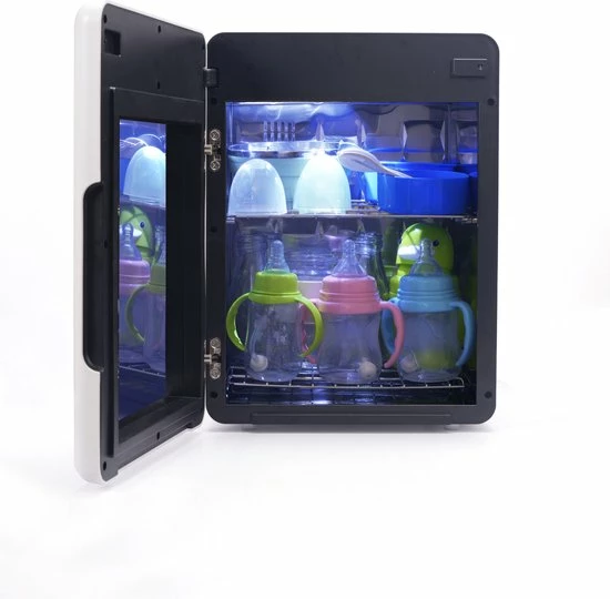 Onze geavanceerde sterilisator is flexibel: door het grote design kun je niet alleen spenen of kleine flesjes steriliseren. Zelfs die grote knuffelbeer van jouw kleintje kan zonder moeite meegenomen worden.