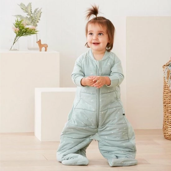 Volledig natuurlijke slaapzakken die je d.m.v. een slimme rits m?t of z?nder ?beentjes? kunt gebruiken. Heel handig om baby?s warm mee te nemen in een babydrager, autostoeltjes of kinderwagen. Kleintjes die al wat ouder zijn kunnen door de anti-slip voetzolen gemakkelijk rondstappen met hun voetjes lekker warm en beschermd in het slaappakje.