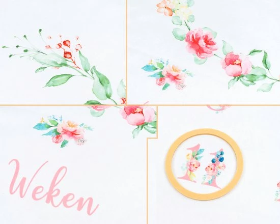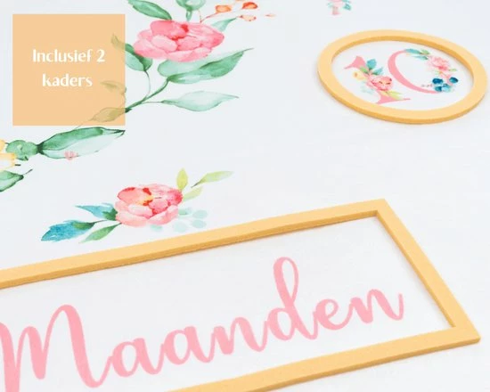 Elk kleed wordt geleverd met 2 bijbehorende kaders van zeer hoge kwaliteit. Door deze kaders te gebruiken op het kleed kun je aangeven hoeveel weken of maanden het kindje is. Dit is een leuke manier om je familie en vrienden op de hoogte te houden van het groeiproces van je baby. En om later zelf op terug te kijken!