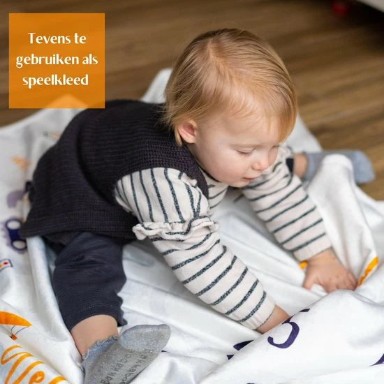 In tegenstelling tot andere merken zijn onze dekens gemaakt van twee lagen hoogwaardig fleece (Minky en Sherpa). Hierdoor zijn onze dekens een stuk dikker en kun je het deken voor meerdere doeleinden gebruiken zoals een inbakerdoek, speelkleed en mijlpaaldeken. Daarnaast kunnen onze dekens gewoon in de wasmachine gewassen worden! Wel zo fijn met jonge kinderen.