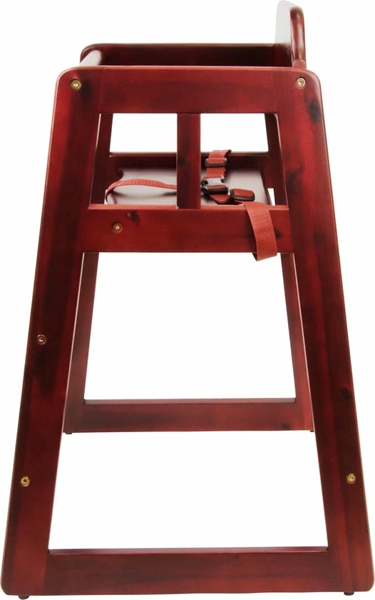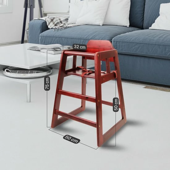 Deze houten kinderstoel in mahonie kleur is een ware toevoeging aan uw interieur. Uw kindje zit op 50 centimeter boven de grond. De totale hoogte van de stoel is 75 centimeter. Het maximale gewicht wat deze kinderstoel kan dragen is 15 kilo, meestal bereikt een kindje dit gewicht rond het derde levensjaar. Onder het zitvlak zit een beschermgordel / tuigje welke voorkomt dat uw kindje onder de stoel uitglijdt.