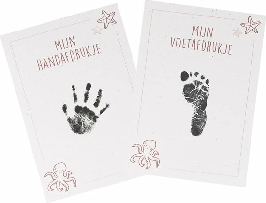 Inktafdruksetjes (2 stuks) met bijpassende kaartjes voor het hand- en voetafdrukje