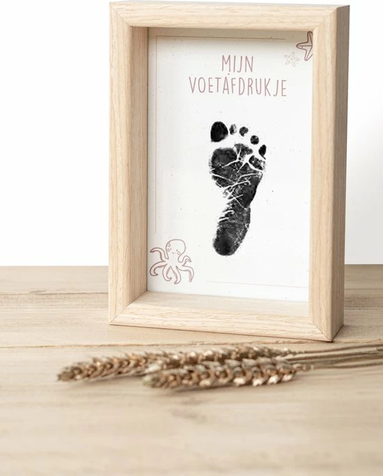 Een afdrukje van het handje of voetje van je baby is een mooie blijvende herinnering aan de tijd dat je kindje nog klein was. Met deze inktafdruksetjes maak je een mooie afdruk zonder dat het handje en voetje vies worden, er is namelijk geen direct contact tussen de inkt en de huid.