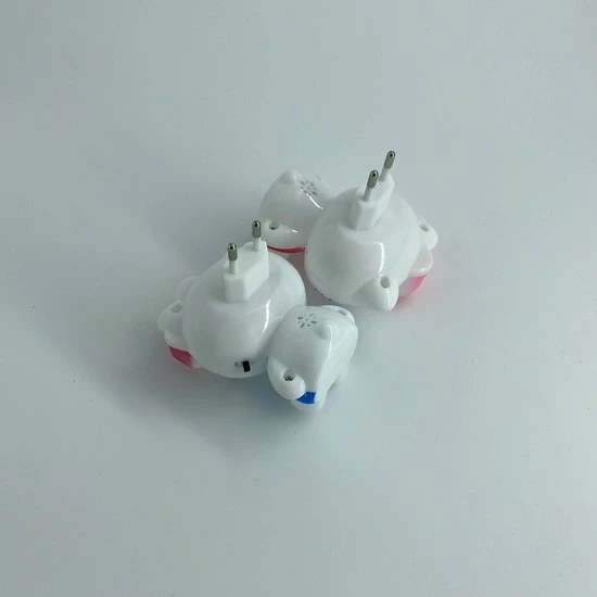 Het nachtlampje is in verschillende kleuren verkrijgbaar: roze, geel en blauw