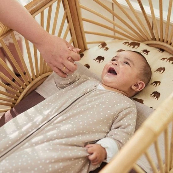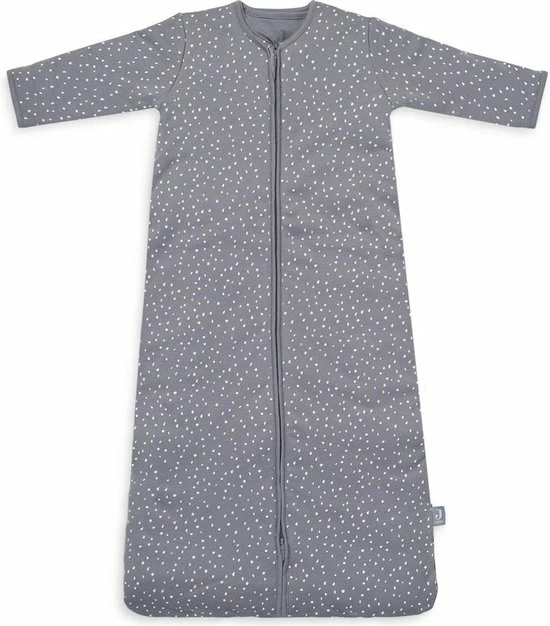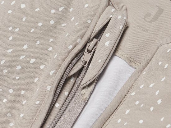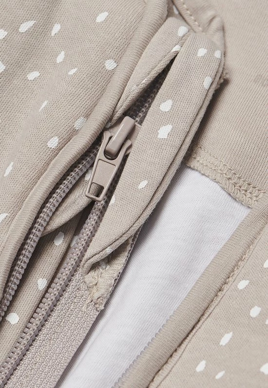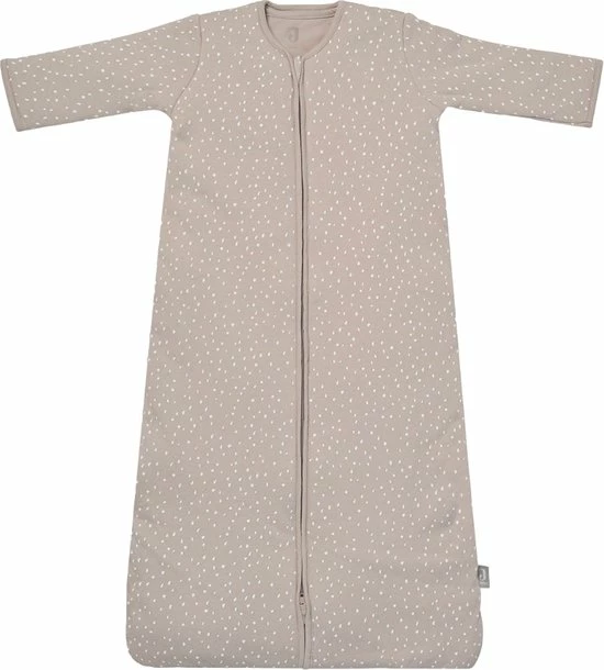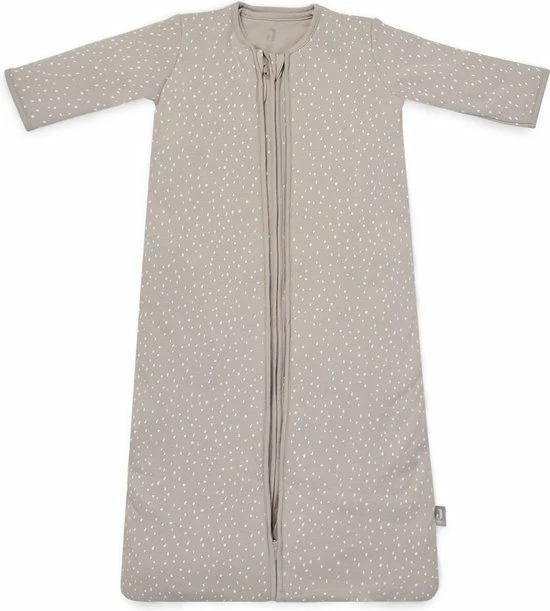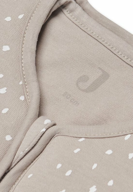 Deze slaapzak heeft een rustige stippenprintje in twee kleuren. Ga je voor de Nougat of voor de grijze variant?