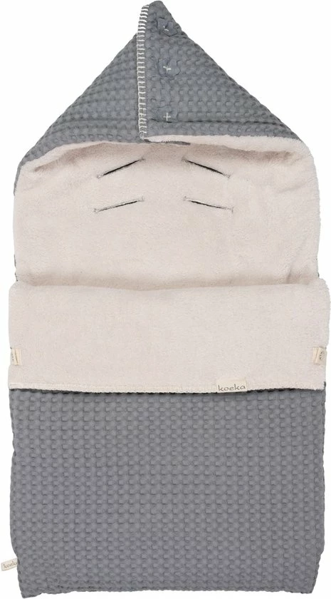 Deze voetenzak is gemaakt van katoen en gevoerd met warme, zachte teddy. De populaire wafelstof van Koeka is een echte bestseller en verkrijgbaar in meerdere kleuren gebaseerd op de laatste interieurtrends. De stof van katoen in wafelreli?f is een stoere uitvoering van de old school retro wafeldekens uit de seventies.