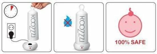 De KooZzzi kruik werkt met een keramisch plaat die elektrisch wordt verwarmd. Na ongeveer 10 minuten is de kruik volledig opgeladen. Na een kwartier is de kruik op temperatuur waarna de KooZzzi kruik uren lang warmte afgeeft. Het is dus verstandig om de kruik aan te zetten als je bijvoorbeeld begint met de voeding. Is de kruik opgeladen leg dan de kruik in het bedje en als je klaar bent met de voeding kun je je baby heerlijk wegleggen in een voorverwarmd bedje. Meestal is dit alleen nodig bij pasgeboren baby?s die hun warmte nog niet kunnen vasthouden. Er komt geen water, olie of andere vloeistof aan te pas waardoor lekken is uitgesloten. Je kunt de KooZzzi oplaadbare kruik altijd vastpakken, de soft-rubber buitenkant voelt comfortabel aan.