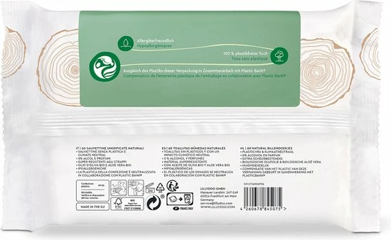 - 100% plasticvrije doekjes gemaakt van plantaardige vezels