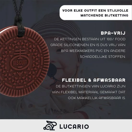 Wij van Lucario vinden de gezondheid van de kauwer het belangrijkst. Wanneer er wordt gekauwd op gummen of pennen kunnen er giftige stoffen vrijkomen wat slecht is voor de gezondheid. Daarom hebben wij een unieke bijtketting ontwikkelt die geen schadelijke stoffen bevat en gemakkelijk te reinigen is. De ketting bestaan uit 100% Food Grade siliconen en is vrij van: