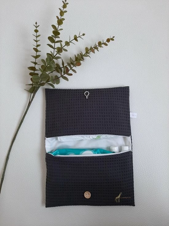 Alles wat je nodig hebt om een luier te verwisselen compact opgeborgen. Geen rondslingerende luiers meer in je tas met dit handige comfykids luieretui voor luiers en billendoekjes. Handig bij een dagje weg of op je vakantie.