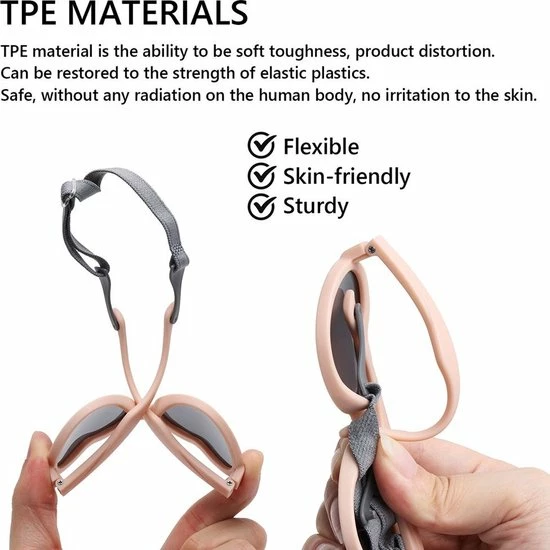 De bril is gemaakt van sterk en flexibel TPE materiaal. hierdoor is de zonnebril licht, comfortabel en buigbaar. Je baby kan deze dus comfortabel en veilig dragen.