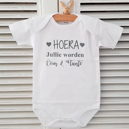 Rompertje baby korte mouw met tekst: Hoera jullie worden oom en tante