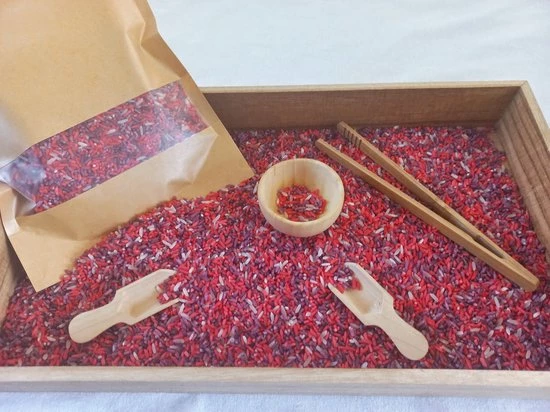 - Rijst: 800 gram gekleurde rijst