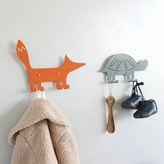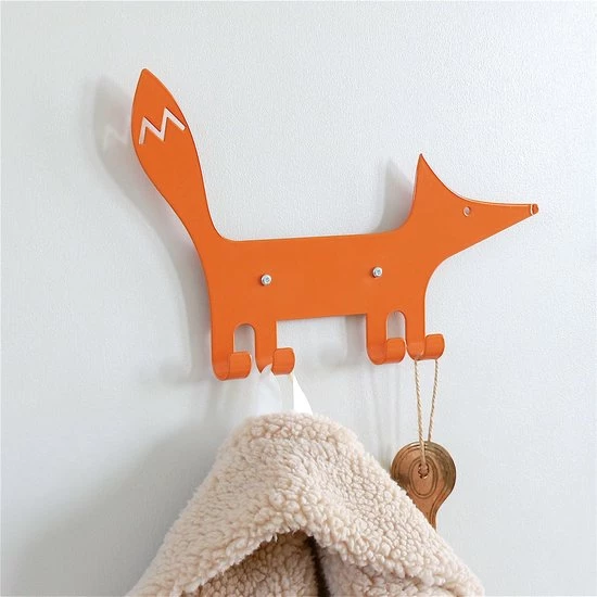 Deze prachtige metalen kinderkapstok in de vorm van een oranje vos is van het Zweedse merk Marnelly. De pootjes van de vos zijn de 4 haken waar je je jas of kleding aan kunt hangen. Een mooie stijlvolle toevoeging aan de kinderkamer of de hal. Ook leuk in combinatie met de andere dieren zoals de eekhoorn, egel of schildpad.