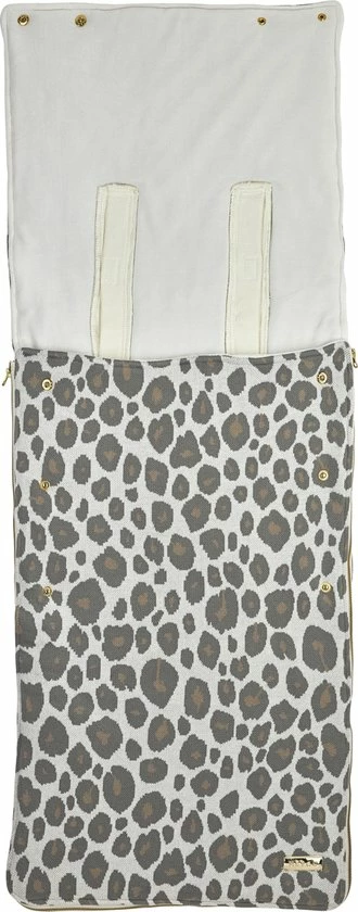 De Meyco buggy voetenzak is gebreid met een trendy panter design. Geschikt voor elke wandelwagen of buggy met een drie- of vijfpuntsgordel.