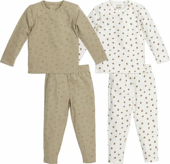 De set bestaat uit 2 pyjama?s die zijn gemaakt van 100% katoen. Hierdoor geniet je kindje van heerlijk zacht en comfortabel slaapcomfort. De pyjama?s hebben een ronde hals, lange mouwen en een broek met lange pijpen en een elastische tailleband. Dankzij de rustige kleuren en de lieve Panther print combineer je de pyjama?s ook onderling perfect met elkaar. Zo zit je altijd goed en grijp je nooit mis bij vlekken of ongelukjes. Even een nieuw t-shirtje of broekje aan en de superleuke set is weer compleet! De pyjama?s mixen en matchen ook heel gemakkelijk met de complete Meyco Baby collectie.
