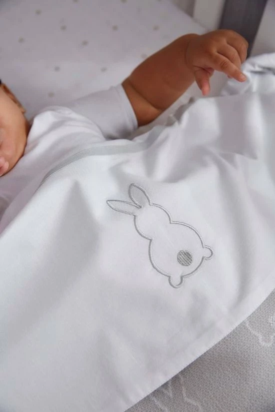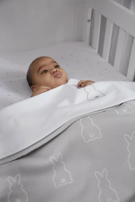Supersnoezig! Deze Meyco Baby Deken Rabbit uit de Meyco X Mrs. Keizer Rabbit collectie, biedt jouw kleine slaper extra zacht comfort en warmte. De gebreide deken heeft op de voorkant een breisel met schattige konijntjes en de achterkant is effen. Gebruik de deken op een Meyco Baby laken om het bedje op te maken.
