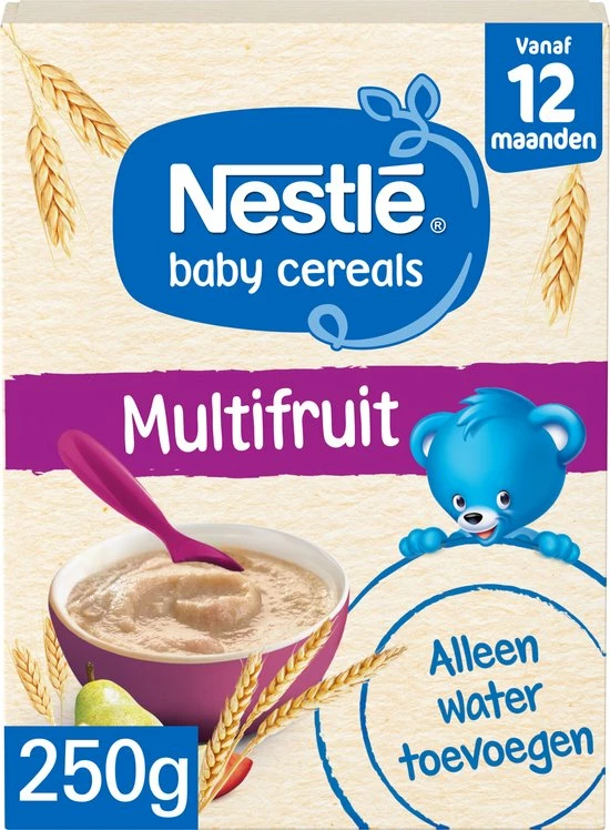 Met Nestl? Ontbijtpapje Multifruit geef je altijd een verantwoord, lekker en compleet ontbijtje. Omdat de pap al melk bevat, hoef je er alleen nog maar water aan toe te voegen. Lekker makkelijk!