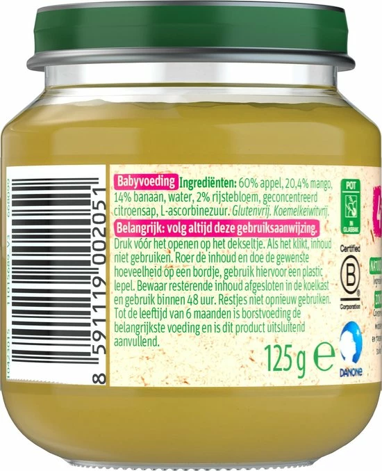 - ??n soort fruit in de hoofdrol en een aangepaste structuur, afgestemd op de leeftijd en voedingsbehoefte van je kindje