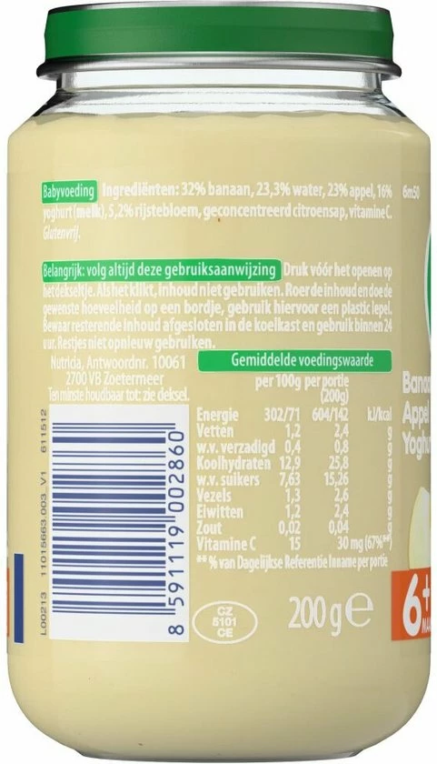 - ??n soort fruit in de hoofdrol en een aangepaste structuur, afgestemd op de leeftijd en voedingsbehoefte van je kindje