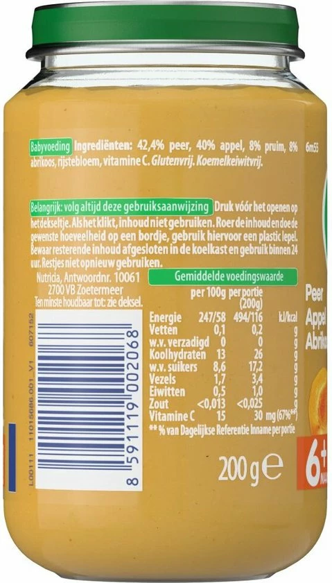 In deze multipack zitten 6 fruitpotjes met elk 200 gram babyvoeding: