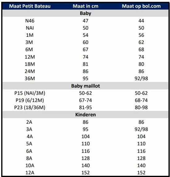 | Maat | 56, 62, 68, 74, 80 |