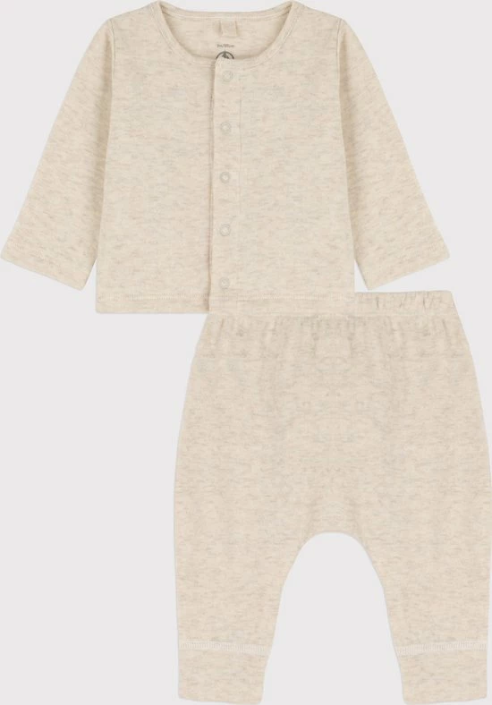 Setje van tubic: een combinatie van twee bijzonder zachte stoffen voor een unieke zachtheid. Cardigan met drukknoopsluiting over de hele lengte om makkelijker te kunnen aankleden. Broek met elastische taille, comfortabel voor uw baby. Verkrijgbaar in 3 kleuren. Katoen afkomstig uit biologische landbouw die een respectvolle cultuur van de grond zonder ggo’s garandeert. Door dit katoen aan te bieden beperkt Petit Bateau zijn impact op de planeet. Product met label STANDAARD 100 by OEKO-TEX ®, CQ 746/3, IFTH, die respect voor de huid garandeert.