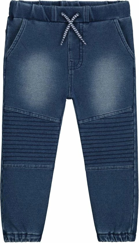 Pr?natal baby broek voor jongens. Dit stoere broekje is gemaakt van een denim kwaliteit in een mooie medium blauwe wassing. De broek is voorzien van gestreepte koordjes en bikerstrepen op de knie?n. Het broekje is goed te combineren met de rest van de Pr?natal collectie. Verkrijgbaar in de maten 56 t/m 110. Kwaliteit: 80% biologisch katoen, 15% polyester en 5% elastaan. Wassen op 40 graden.