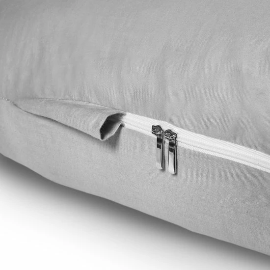 Het zwangerschapskussen heeft een afneembare en wasbare hoes een met gouden rits van 3.2 meter waardoor deze gemakkelijk te verwisselen is. Aan het uiteinde van de rits zit aan beide zijden een beschermhoesje zodat de rits netjes weggewerkt kan worden.