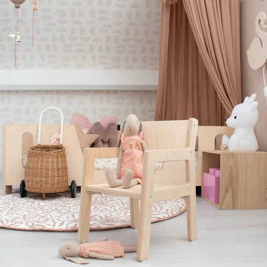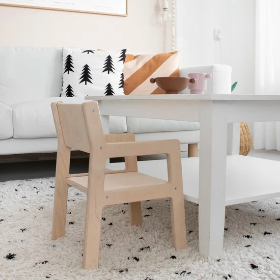 Dit stijlvolle houten kinderstoeltje is ideaal voor jouw peuter! Al vanaf het moment dat je kind gaat staan is dit stoeltje van hout super handig! Het stoeltje is stevig genoeg om mee te leren lopen en vooruit te duwen op een gladde vloer, omdat er viltjes onder zitten. Het is een goede oefening voor je kind om zelf op een kinderstoel te gaan zitten van zijn of haar eigen formaat. Het zal je kind een gevoel van zelfvertrouwen geven als het op zijn eigen stoel heeft. Je kunt het stoeltje ook aanschuiven aan je salontafel. Dan kan je kind daar spelen of fruit eten. Ideaal dus dit stoeltje! Tot de leeftijd van 3 ? 4 jaar past je kind er prima op!
