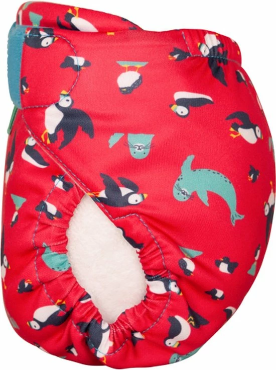 De TotsBots wasbare zwemluier heeft elastiek rond het middel en bij de beeningangen zodat ongelukjes tijdens het zwemmen niet in het water terechtkomen. De zwemluier sluit met klittenband op de buik: handig bij het verschonen. De zachte binnenvoering is prettig als je kind nog niet in het water is. Dit is maat 2: 9 – 16 kg.