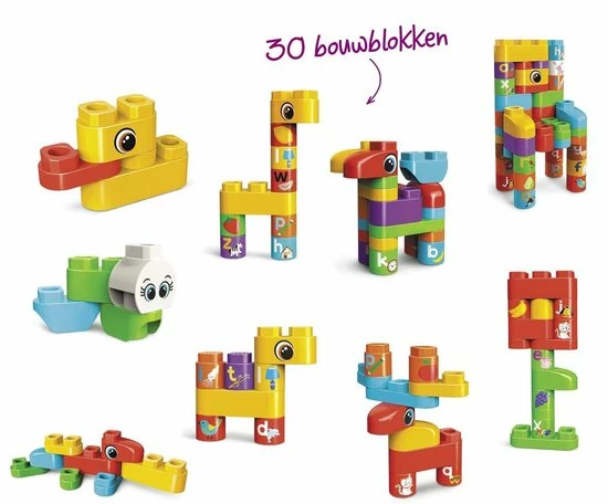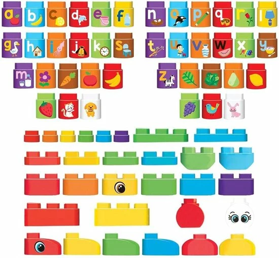 Gebruik je fantasie en gebruik de 50 bouwblokken om vele creatieve combinaties te maken. Plaats de blokken op elkaar en maak kennis met letters, dieren, voorwerpen, kleuren, groenten en fruit! In de blokkenset zitten 20 interactieve bouwblokken die herkend worden als je ze op het basisblok plaatst. Het basisblok noemt dan de naam van het voorwerp wat op het blokje staat. Ook te gebruiken in combinatie met andere Bla Bla Blocks speelsets. Een stevig en duurzaam design.