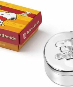 Snoopy is een van ?s werelds bekendste cartoons en nog steeds geliefd bij jong en oud. Dit ovalen verzilverde doosje voor het bewaren van de eerste tandjes en/of haarlokje staat de afbeelding van Snoopy. Het tandendoosje is verzilverd en gelakt, waardoor poetsen overbodig is. De binnenzijde is afgewerkt met velours. Wordt geleverd in bijpassende geschenkverpakking.